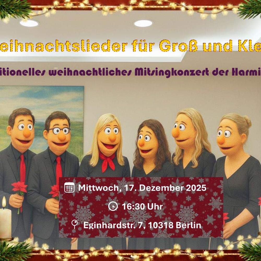 Das Jahr neigt sich dem Ende und so naht auch unser letztes Konzert 2025: Unser zur Tradition gewordenes weihnachtliches Mitsingkonzert am Mittwoch vor Heiligabend. Wie die letzten Jahre werden wir einige Titel zum Vortrag bringen, während bei anderen explizit das Mitsingen erwünscht ist - wie wertvoll gemeinsames Singen ist, merken wir fast wöchentlich in unserer Chorprobe. Nun laden wir Sie und euch ein, zu Weihnachten diese positiven Nebeneffekte mitzuerleben. Um nur einige davon zu nennen: Gemeinsames Singen baut Stress ab, mindert Angst- und Depressionen, Stärkt das Selbstbewusstsein, die Teamfähigkeit und das Gemeinschaftsgefühl. Gleichzeitig wird dabei die Sprache, Konzentration und Kreativität gesteigert. - Wenn das nicht gerade zu Weihnachten ein wertvoller Termin ist: Herzliche Einladung zum 17.12.2025 um 16:30 in der Eginhardstraße 7, 10138 Berlin.
